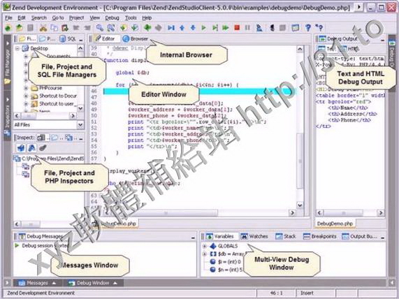 調試工具,支持PHP語法加亮顯示,支持語法自動填充功能,支持書籤功能,支持語法自